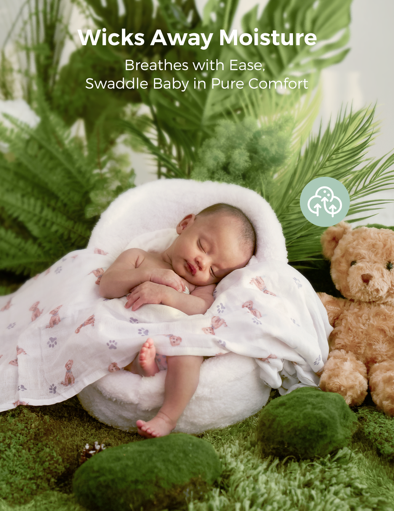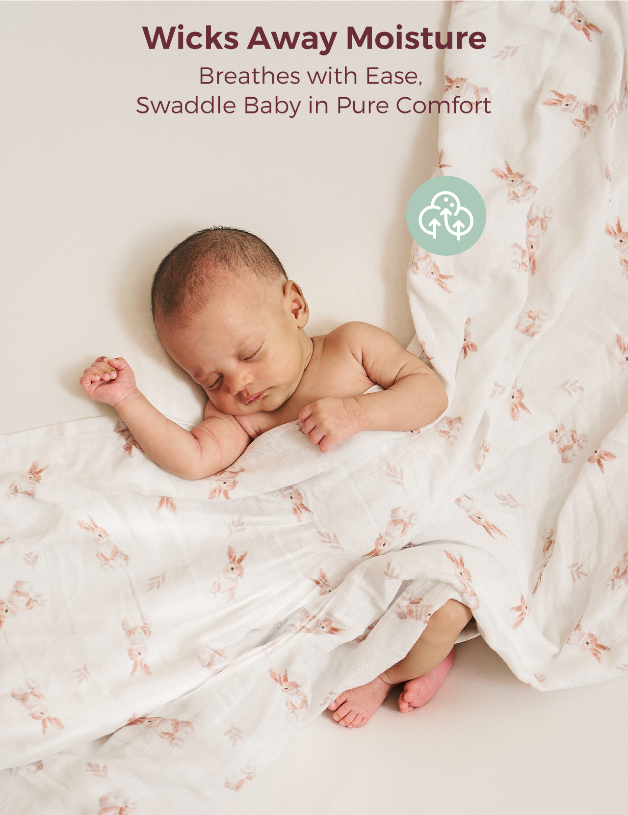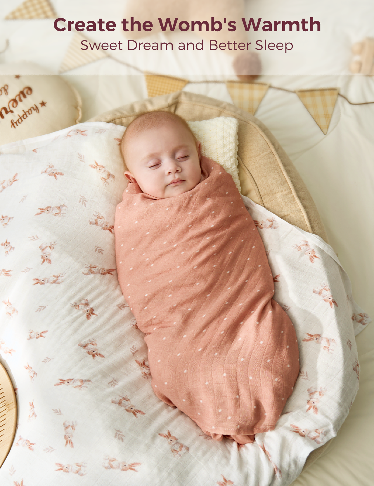- 【Baby Sleep Better】Size 47" X 47'' (120 x 120 cm), large enough to easily wrap babies, prevents newborn babies from startling themselves awake with random arm movements, recreates the secure and cozy feeling of the womb, helps soothe your baby and get them a b etter sleep. Muslin swaddle blankets also has a certain degree of stretch, which can ensure the comfort of the baby.