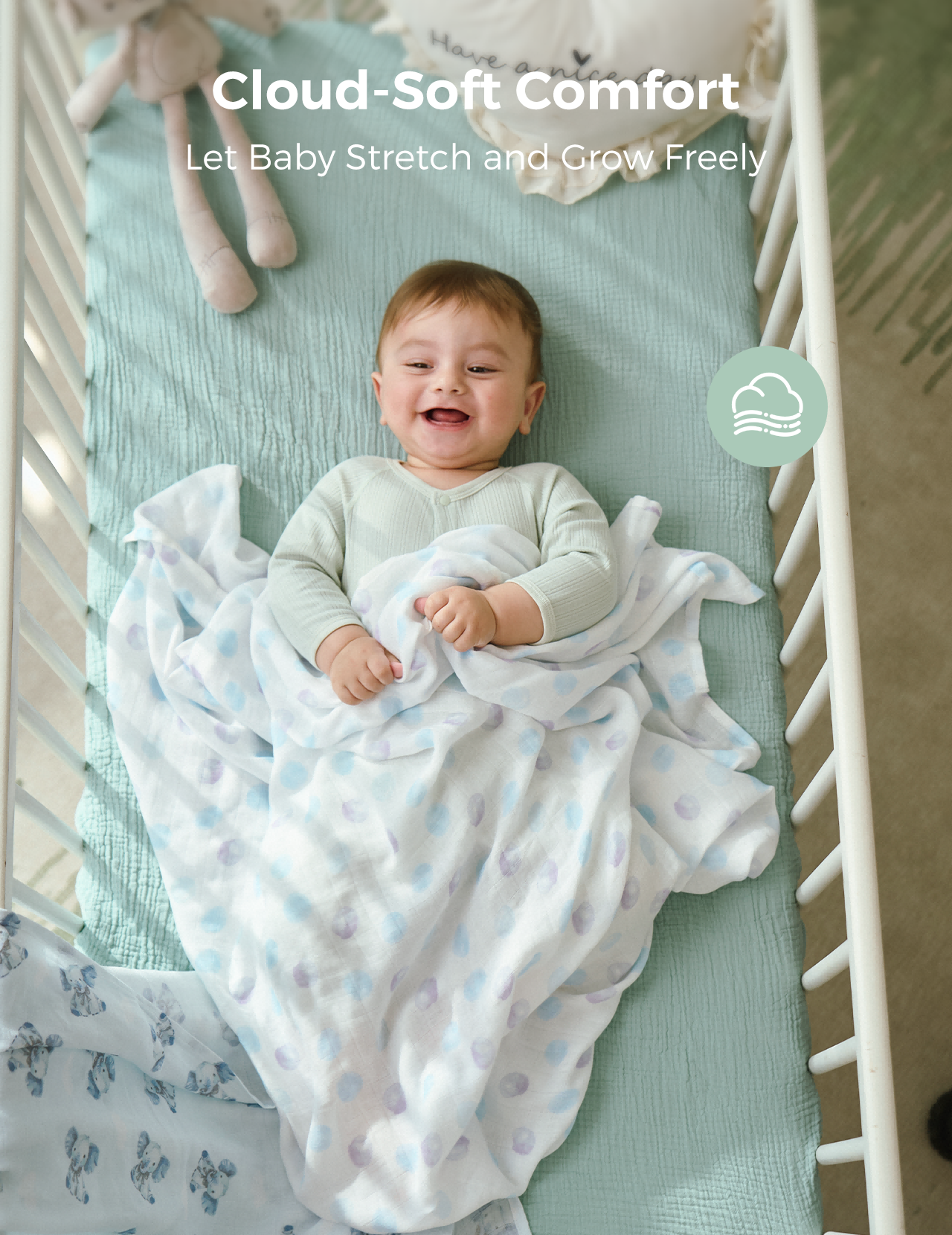 - 【Baby Sleep Better】Size 47" X 47'' (120 x 120 cm), large enough to easily wrap babies, prevents newborn babies from startling themselves awake with random arm movements, recreates the secure and cozy feeling of the womb, helps soothe your baby and get them a b etter sleep. Muslin swaddle blankets also has a certain degree of stretch, which can ensure the comfort of the baby.