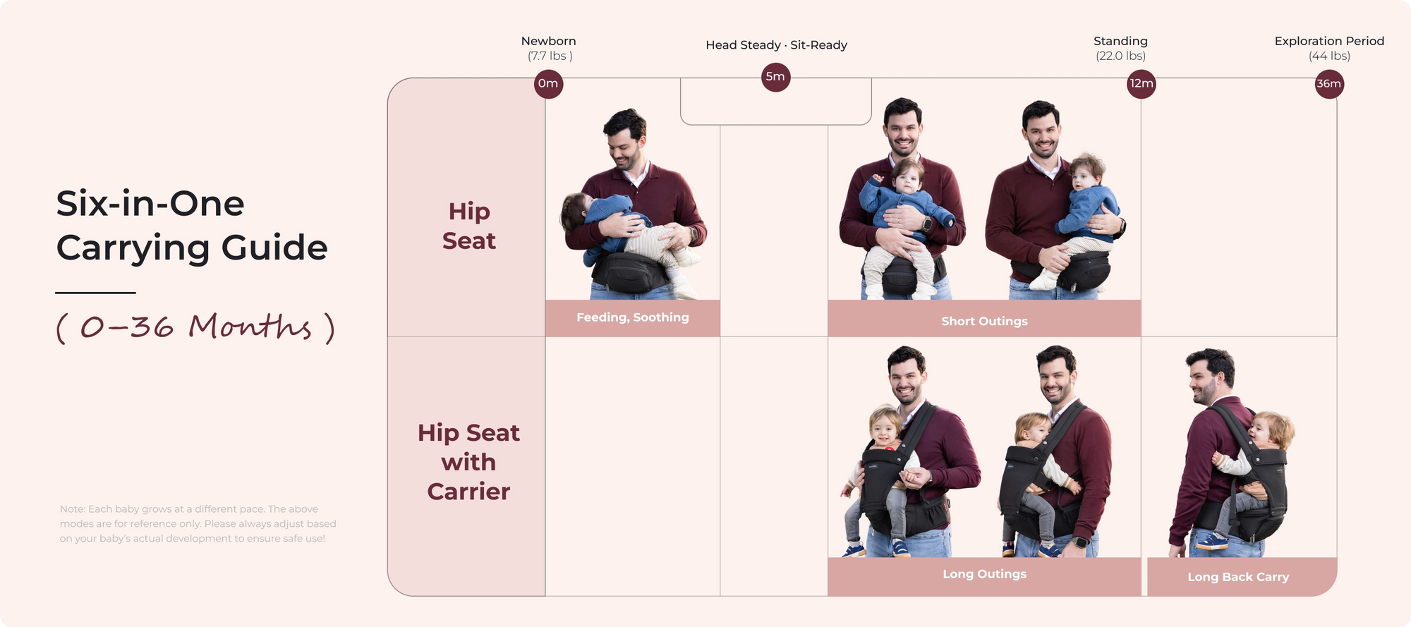 The 2-in-1 hip seat carrier easily adapts to your baby’s needs—whether they’re eager to explore or ready to rest—making frequent ups and downs effortless.