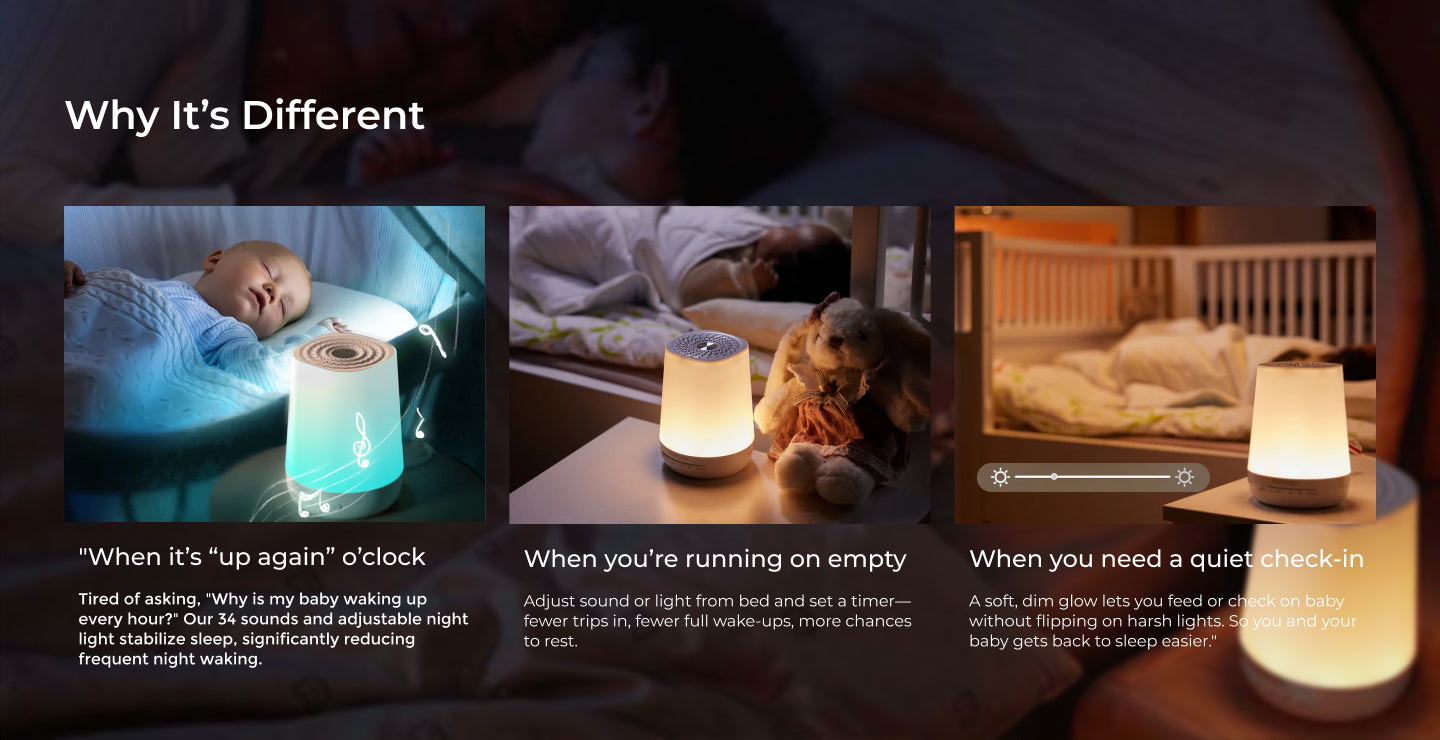 Soothing sound + soft light for bedtime, naps, and middle-of-the-night resets.