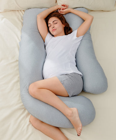 Momcozy full-body pregnancy pillow provides the perfect balance between comfort and support for your belly, hips, legs, and back. Enjoy superior comfort while you sleep or even just lounge around. You can also use this pillow to sit upright in bed to read, watch TV, or work on your laptop. Makes an excellent nursing pillow too!