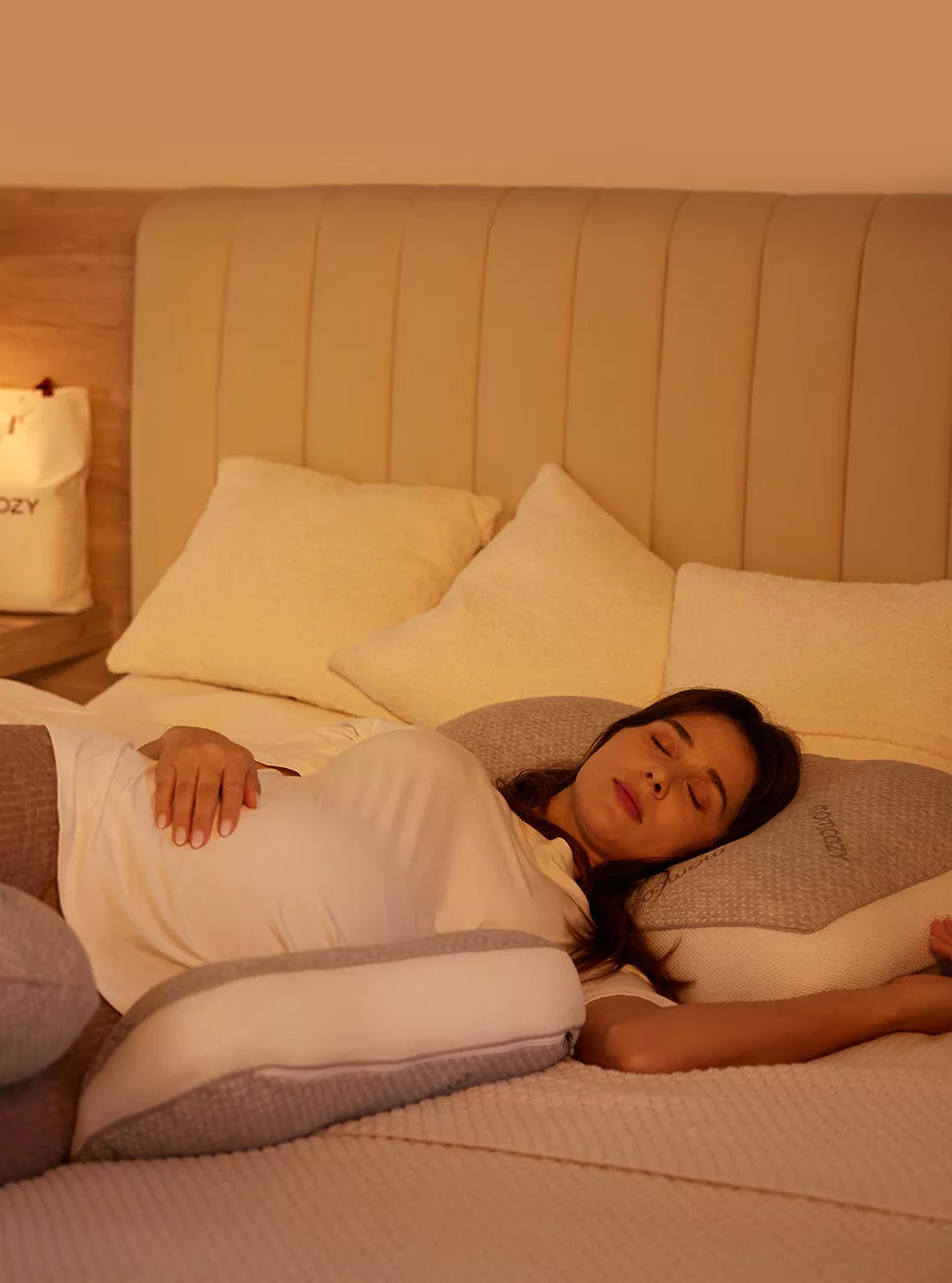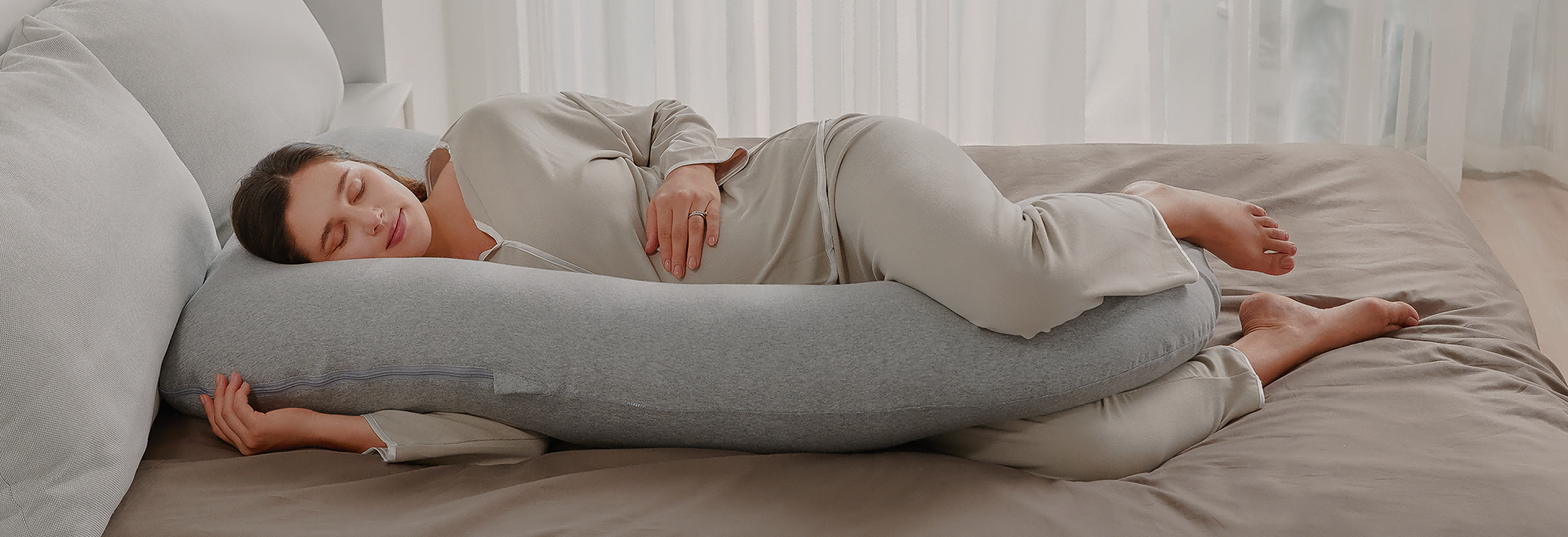 It supports physically, combined “U” shape and “C” shape supports all the body parts that need to be supported during pregnancy, to relieve pelvic pain, hip pain, leg pain and further “baby bump” burden with specially designed protruded lump. It also supports mentally, super soft fabric and bouncy filling bring you great comfort, to get a solid sleep every night.