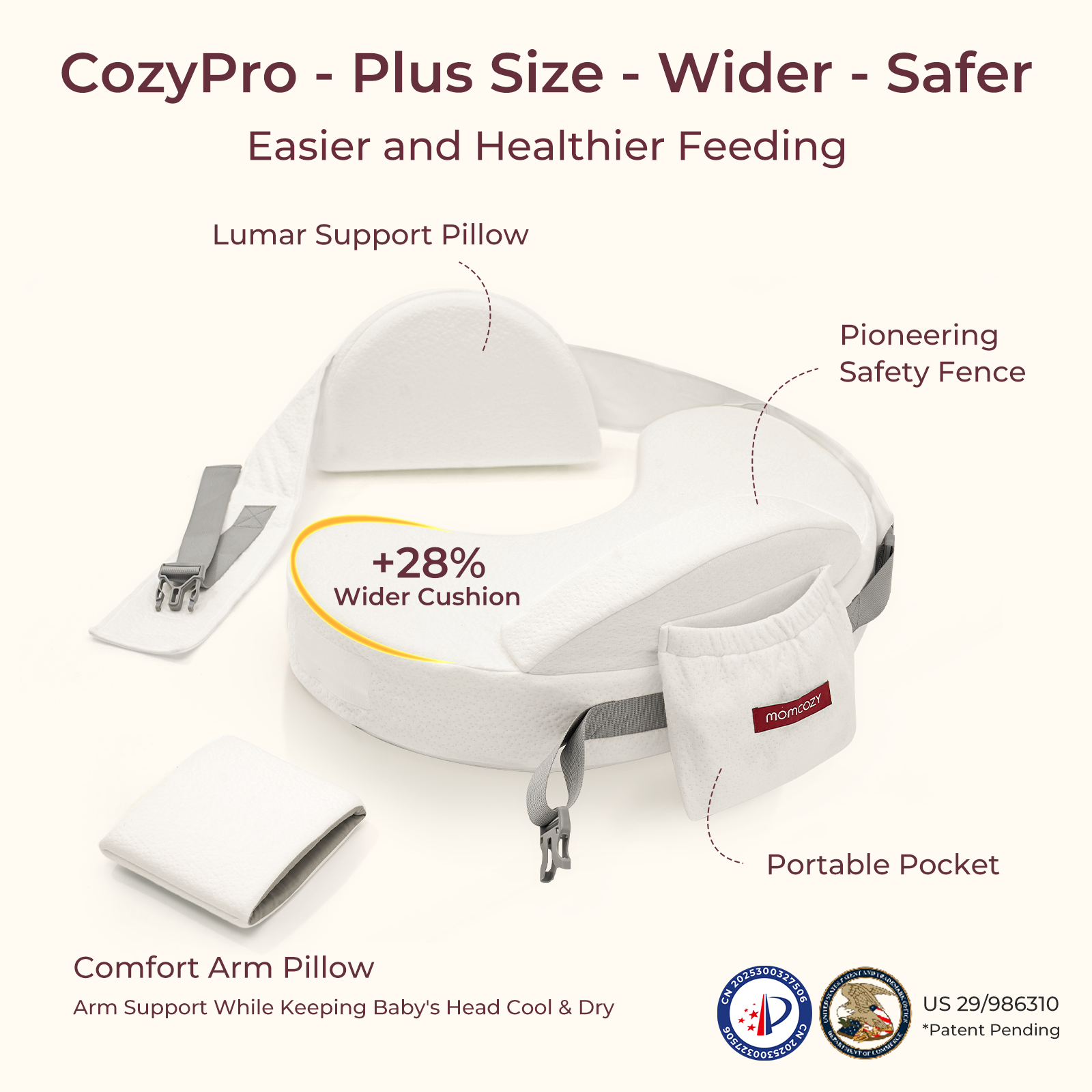 28% wider cushion (22.6" x 14.5") grows with your baby, providing full arm support for long, stress-free nursing sessions.