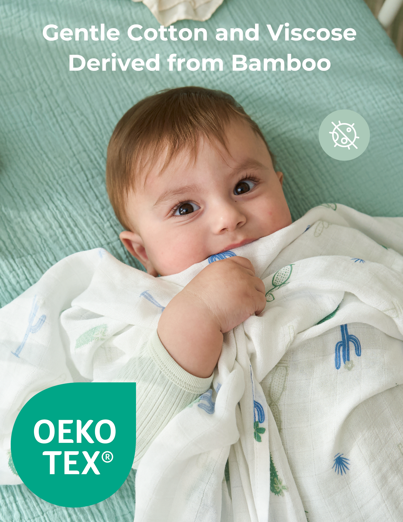 - 【Baby Sleep Better】Size 47" X 47'' (120 x 120 cm), large enough to easily wrap babies, prevents newborn babies from startling themselves awake with random arm movements, recreates the secure and cozy feeling of the womb, helps soothe your baby and get them a b etter sleep. Muslin swaddle blankets also has a certain degree of stretch, which can ensure the comfort of the baby.