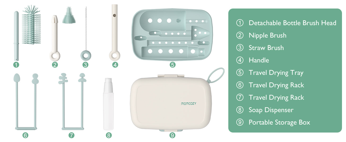 The built-in drying rack allows for efficient air-drying of all baby feeding accessories