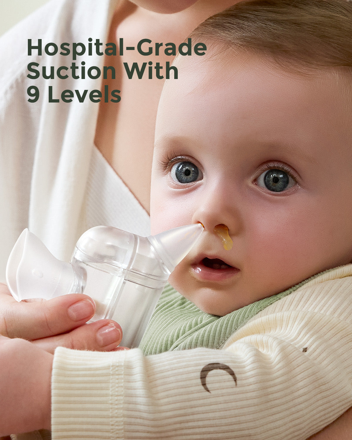 Choose from 9 adjustable, hospital-grade suction to match your baby’s comfort and nasal condition—from runny noses to more stubborn blockages.