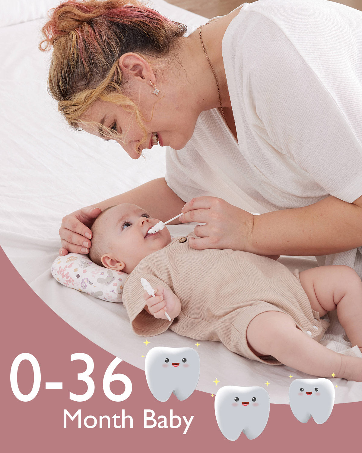 • Care for Baby's Oral - Momcozy baby tongue cleaner is suitable for 0-36 month baby. We provide oral care products include baby silicone toothbrush, baby finger toothbrush, baby tongue cleaning wipe and so on, fully meet the needs of baby oral care