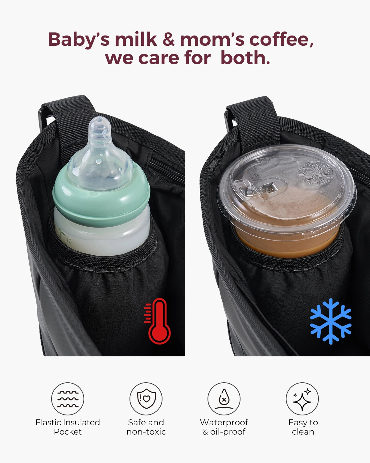 • 2 INSULATED BOTTLE HOLDER: Built-in insulation keeps drinks warm or cold longer for real-world outings (coffee for you, milk for baby).