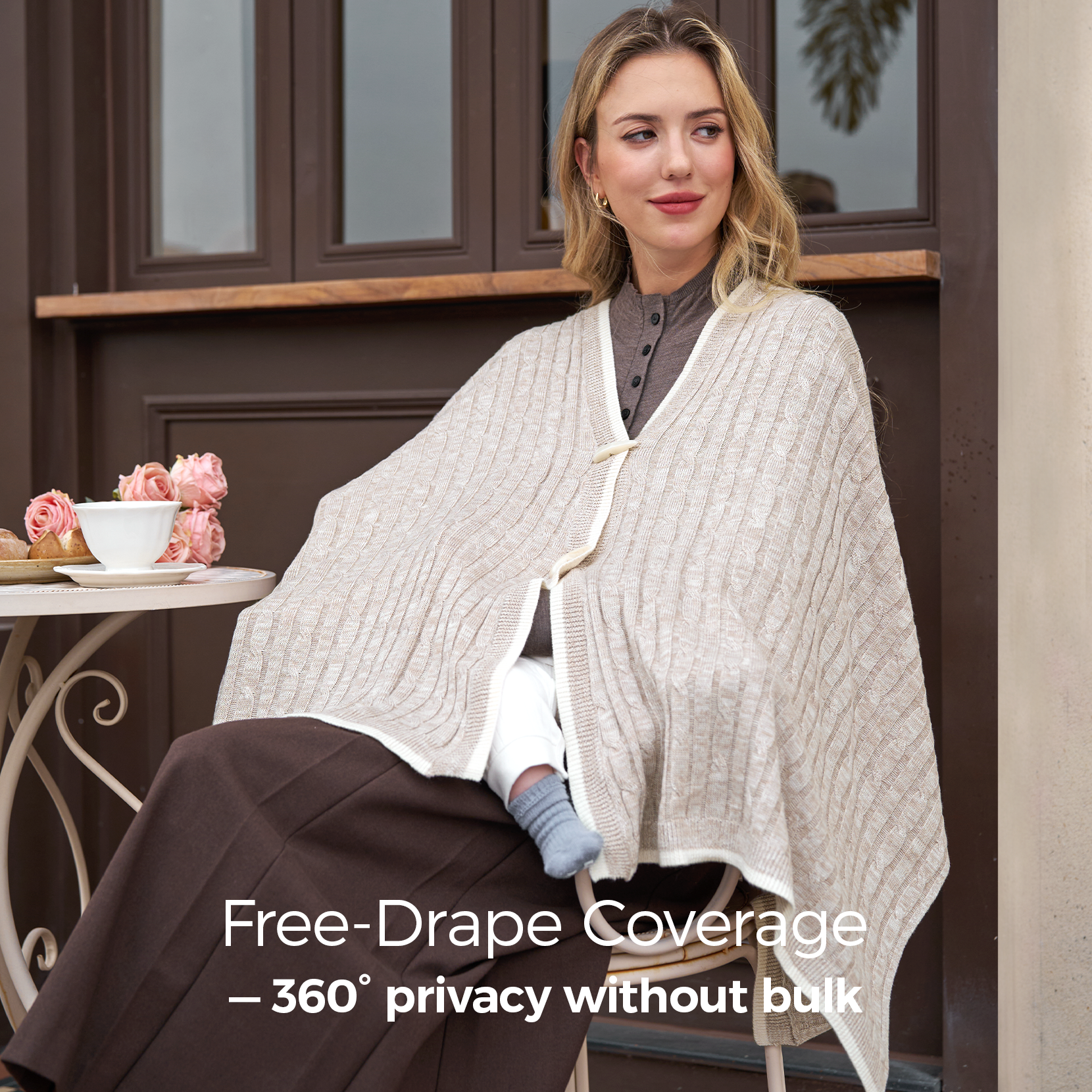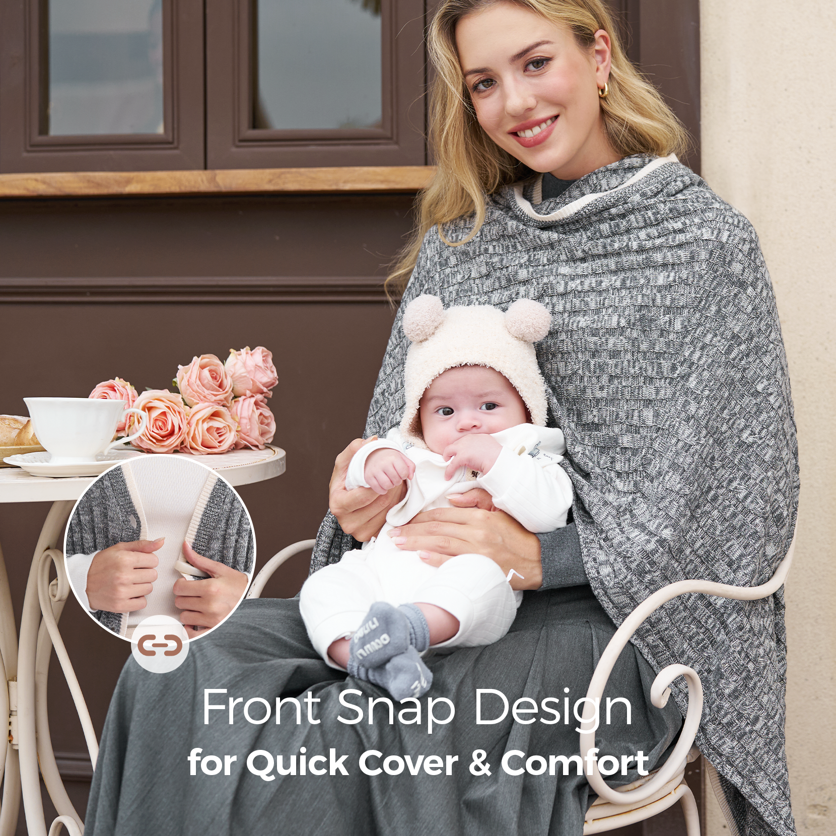 • Shawl-Like Style: More than just a nursing cover, this versatile piece doubles as a chic shawl. The stylish poncho design adds elegance and comfort to your everyday wardrobe, whether at home or on-the-go.