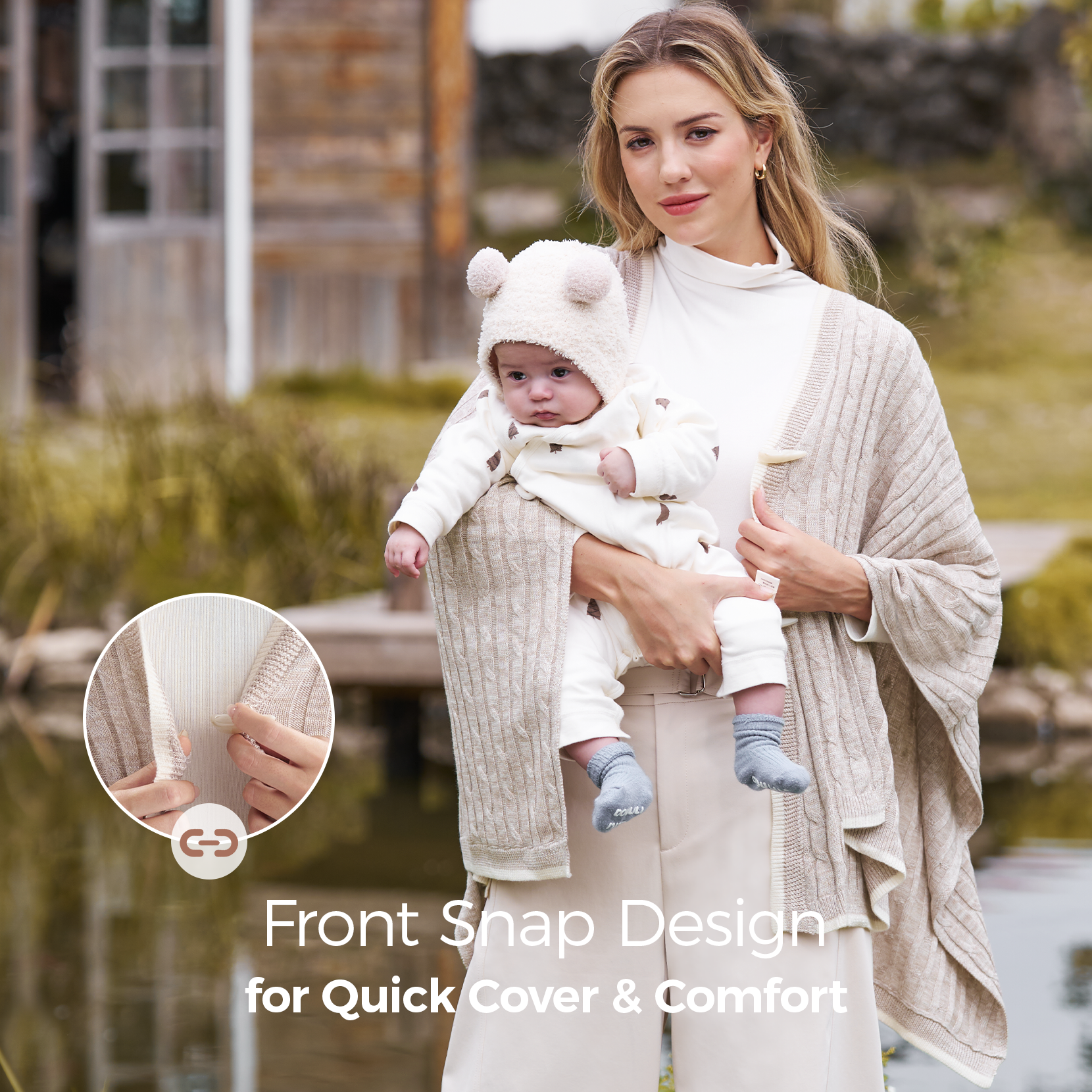 • Ultimate Winter Warmth: Crafted from a silk-touch wool-blend fabric, including 2.5% wool, this nursing cover keeps both mom and baby cozy without bulk. Perfect for cold weather, it provides warmth and comfort all day long.